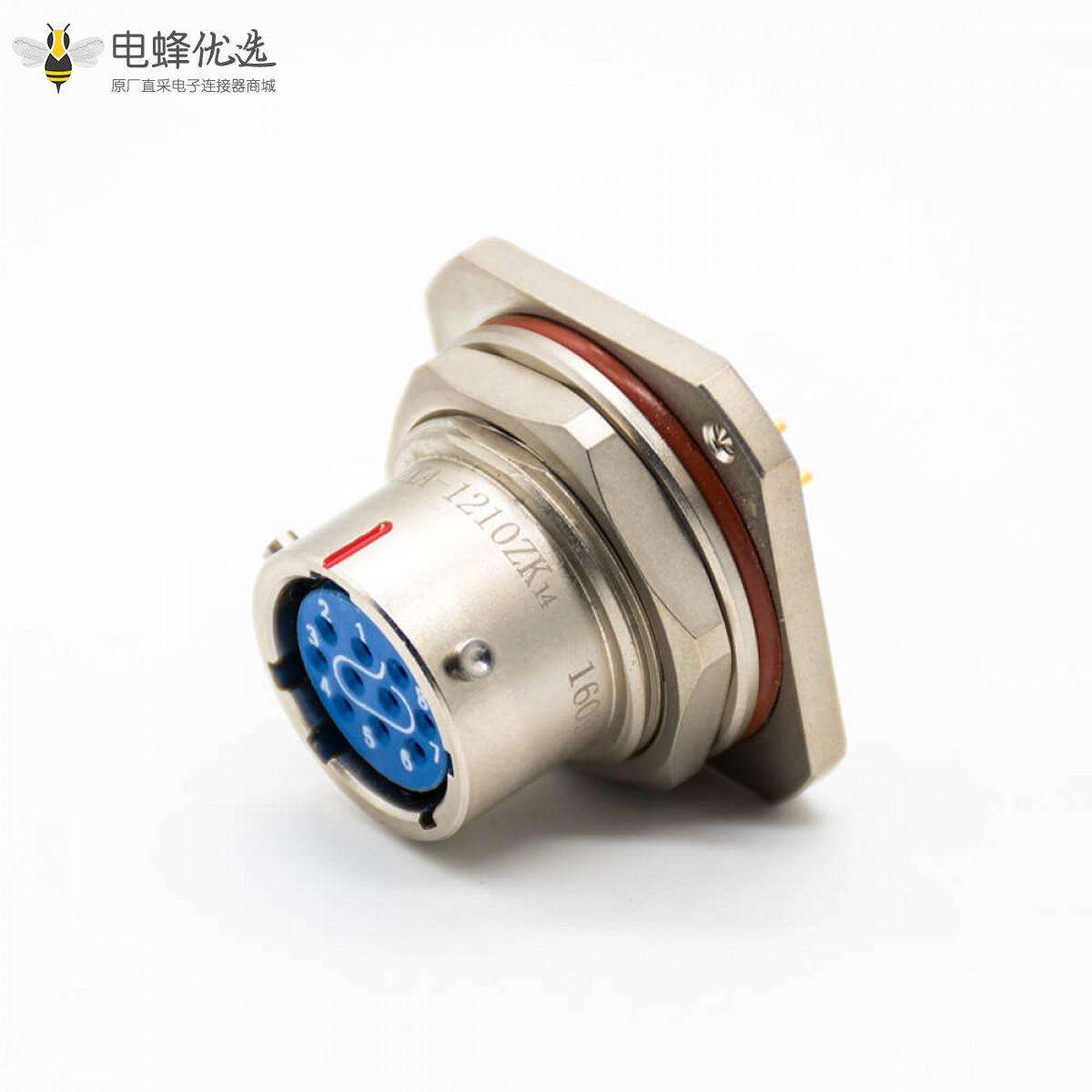 - Y50X,12,10芯,插座,母,直式,卡口连接,面板安装/PCB,前锁板,防水,铝合金
