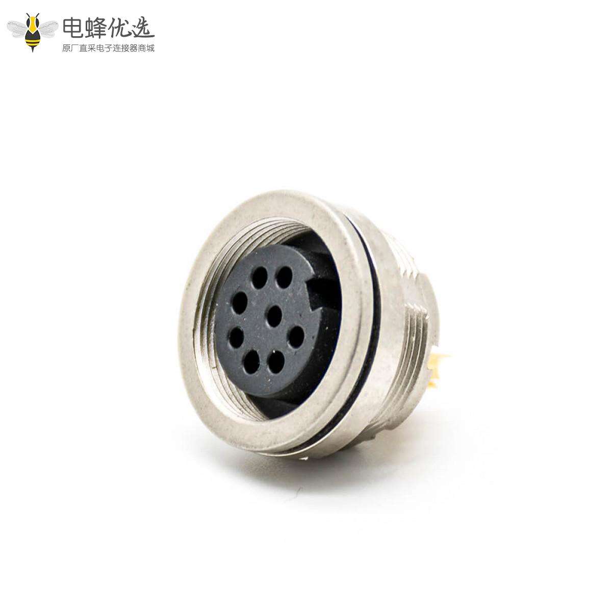 M16,插座, 8芯,母,直式, 面板/线材, 后锁板,焊线,带屏蔽;