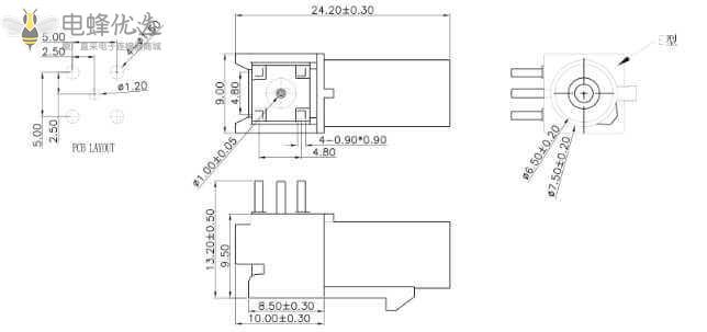 配接耐久性:大于500次 (使用铍铜中心针时)