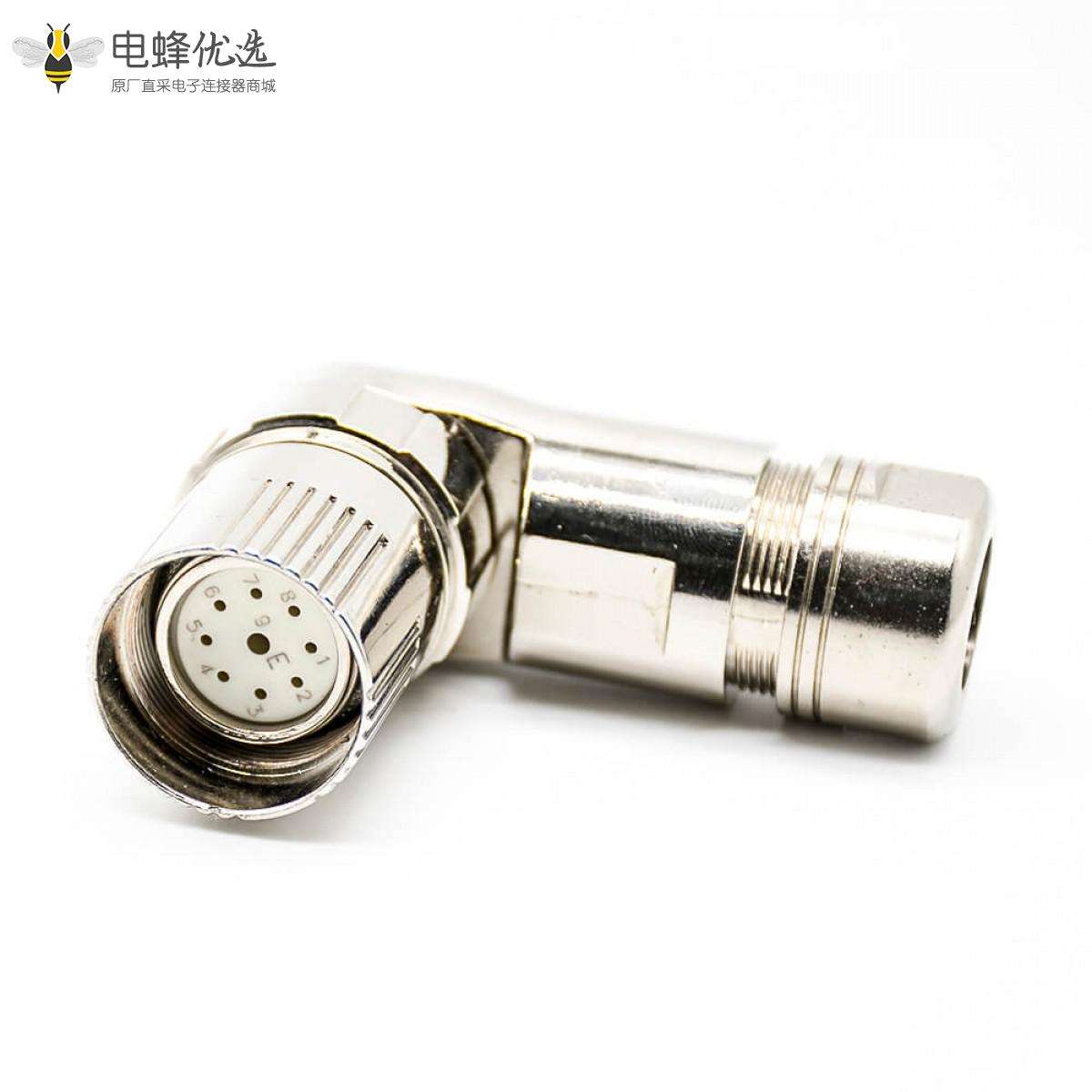 9针,母,90度弯,接线,焊接类型,屏蔽,M23连接器;