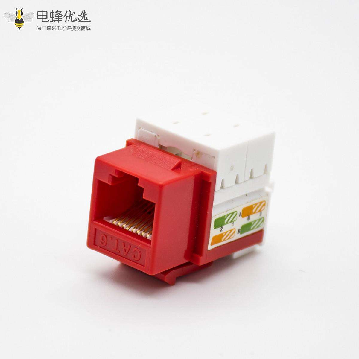 RJ45插座,8P8C,单端口,1*1,弯式90°,触头镀金,插孔,面板安装,非屏蔽,CAT6,红色;