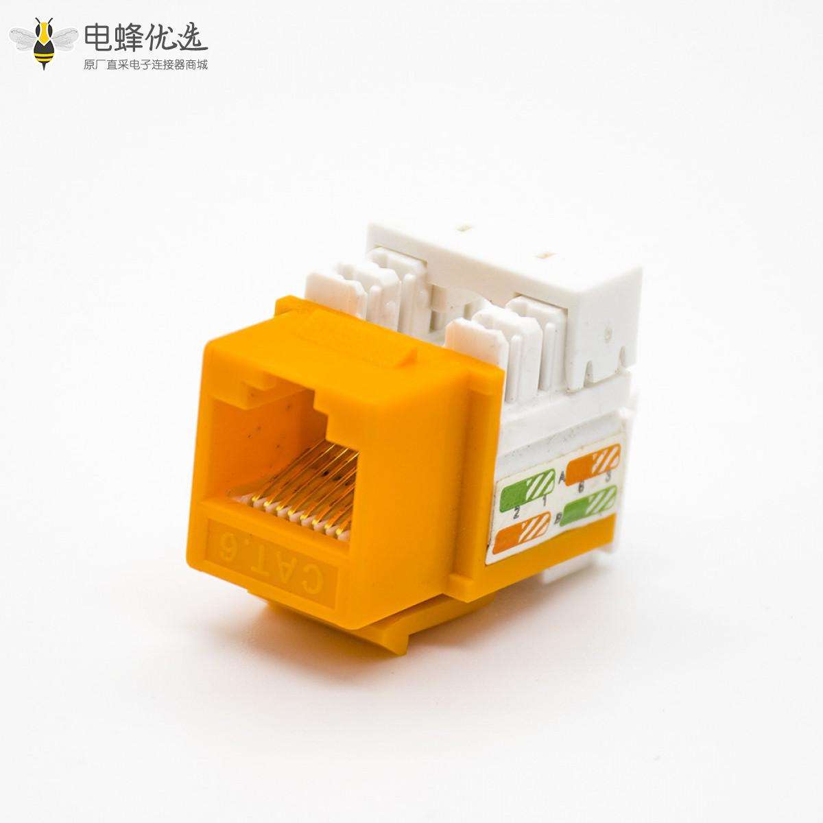 RJ45插座,8P8C,单端口,1*1,弯式90°,触头镀金,插孔,面板安装,非屏蔽,CAT6;