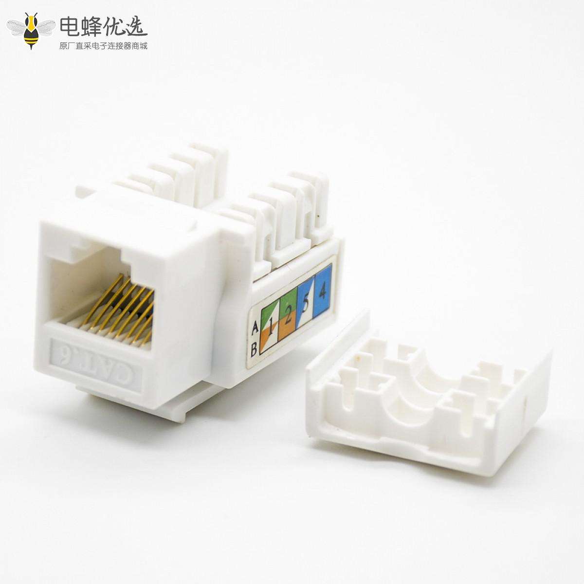 RJ45插座,8P8C,单端口,1*1,弯式90°,触头镀金,插孔,面板安装,非屏蔽,CAT6;