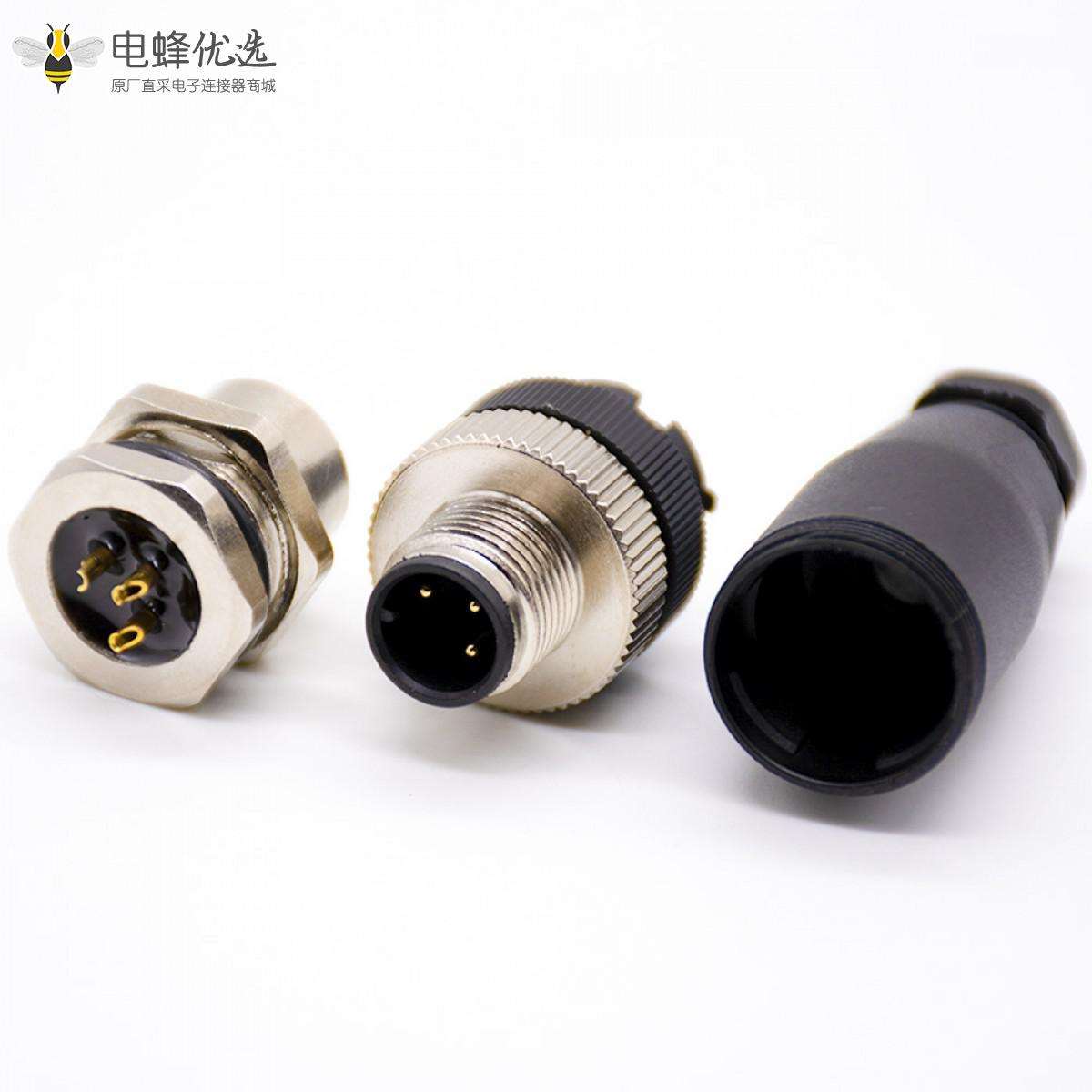 A编码,3针,母座,直,公头,直,焊线,前锁板,M12连接器;