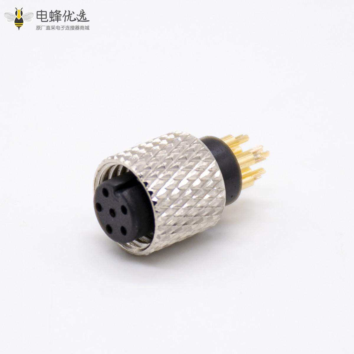 - A code,6芯,母,直式,焊杯,不带屏蔽,m8连接器;