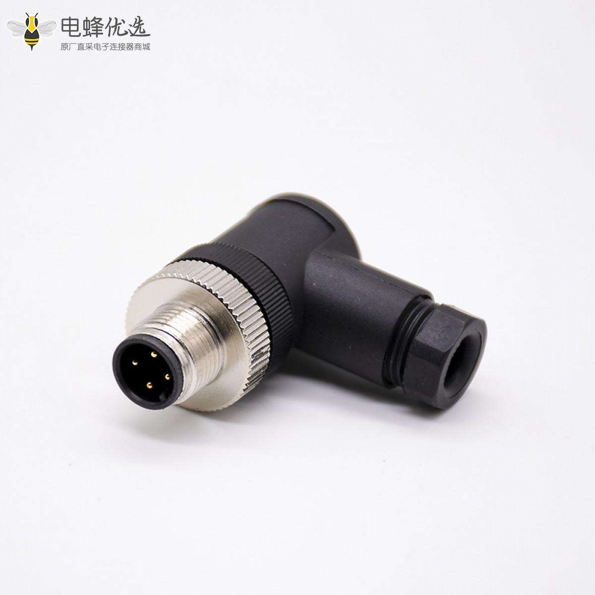A编码,4芯,公,弯,螺丝锁接式,不带屏蔽,m12连接器;