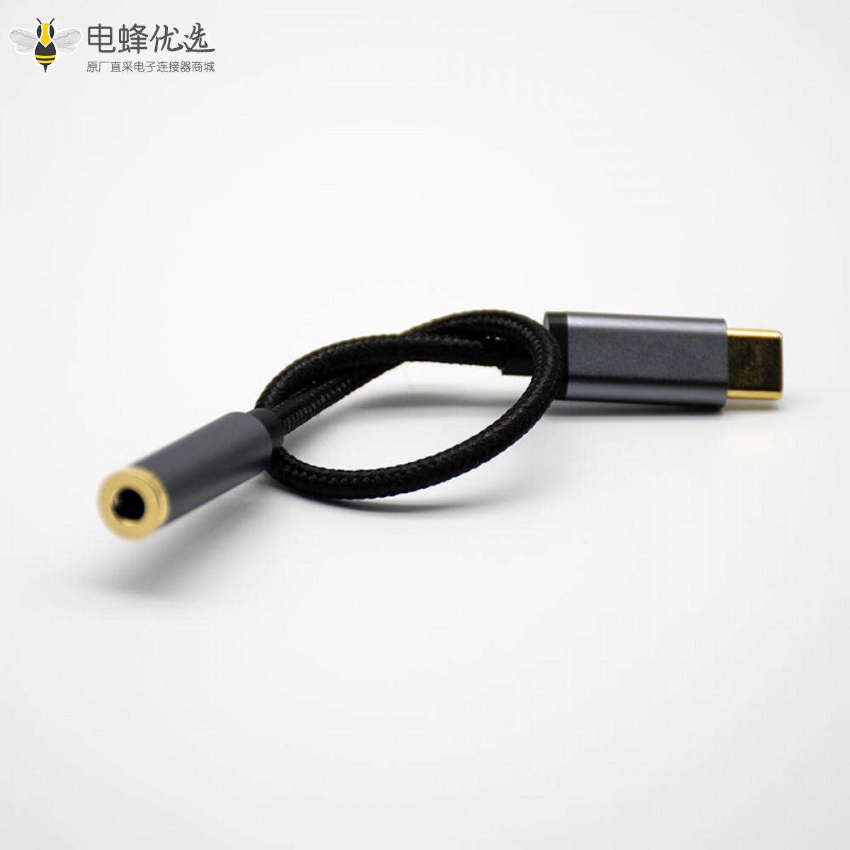 Type-C,公,耳机母头,直式,音频线黑色,0.15米;