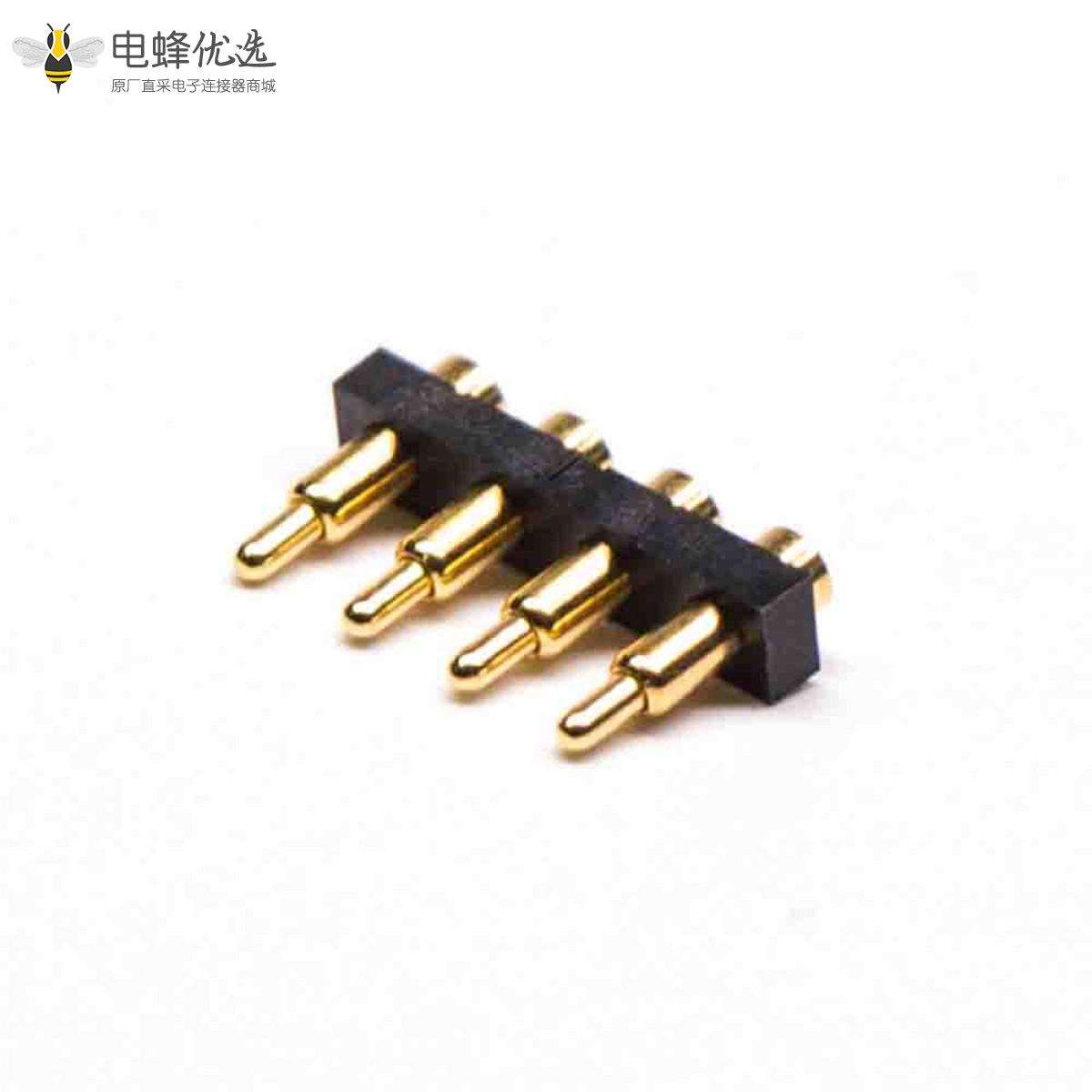 Pogo Pin连接器,多Pin系列R型,黄铜,镀金,侧放式,4芯,间距3,普通单头系列单针,单排