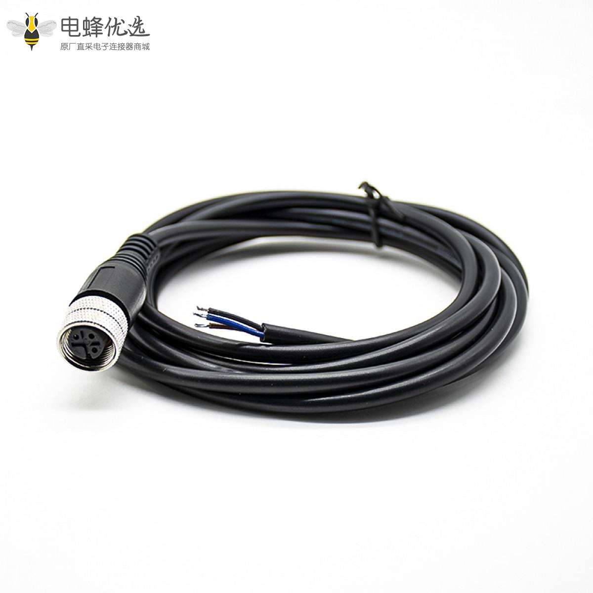 M12,线束, A Code,单边线,3芯,母,直头,接线,焊接,不带屏蔽,2米;