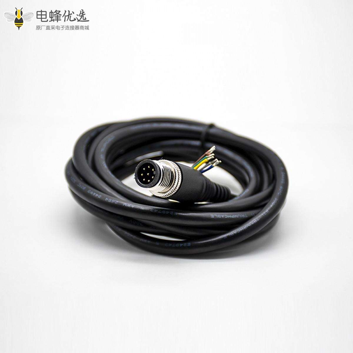 M12,线束, A Code,单边线,8芯,公,直,接线,焊接,不带屏蔽,2米;