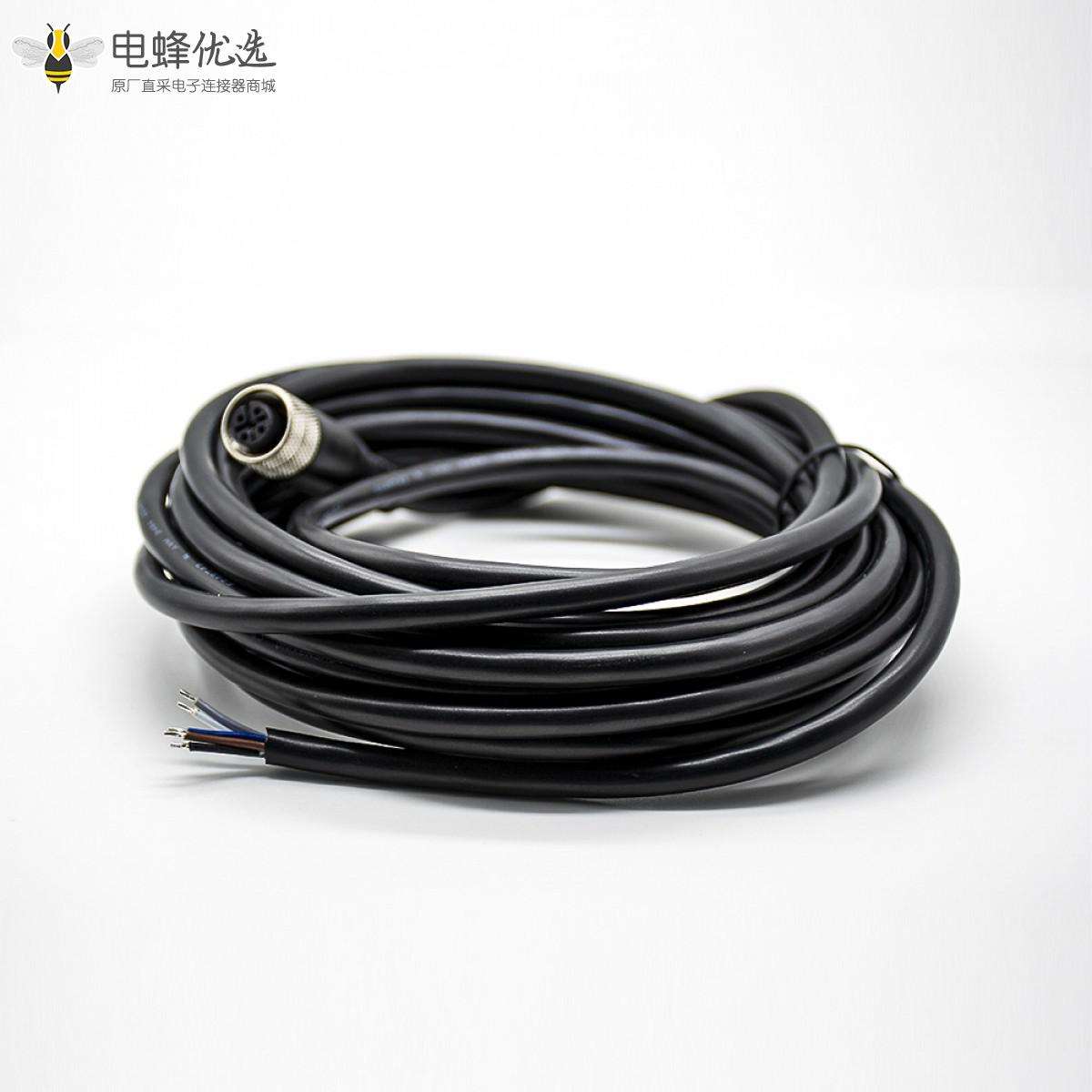 M12,线束, A Code,单边线,5芯,母,直,接线,焊接,不带屏蔽,5米;
