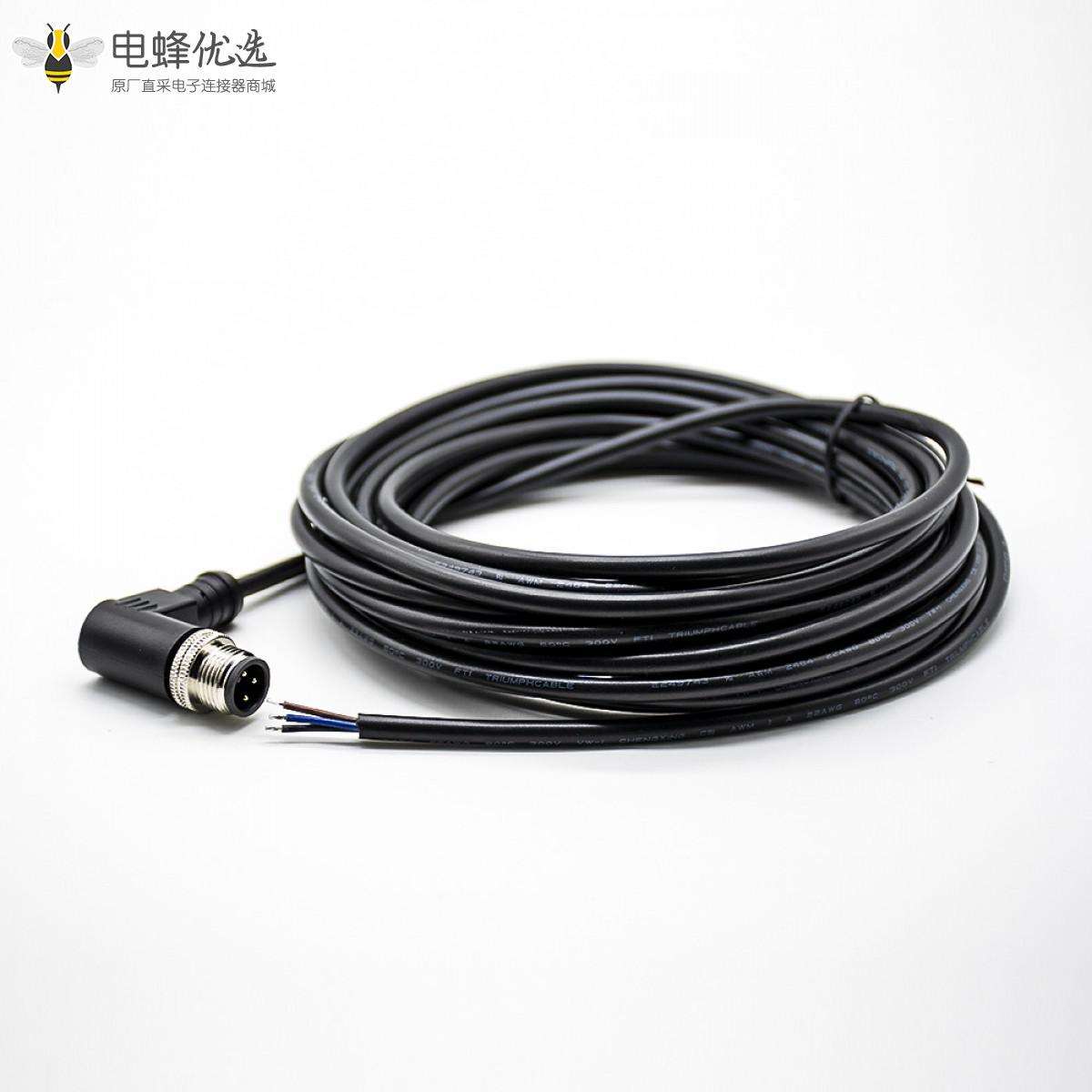 M12,A 编码,线束,3芯,公,弯式,焊线,单边线,不带屏蔽,5米;