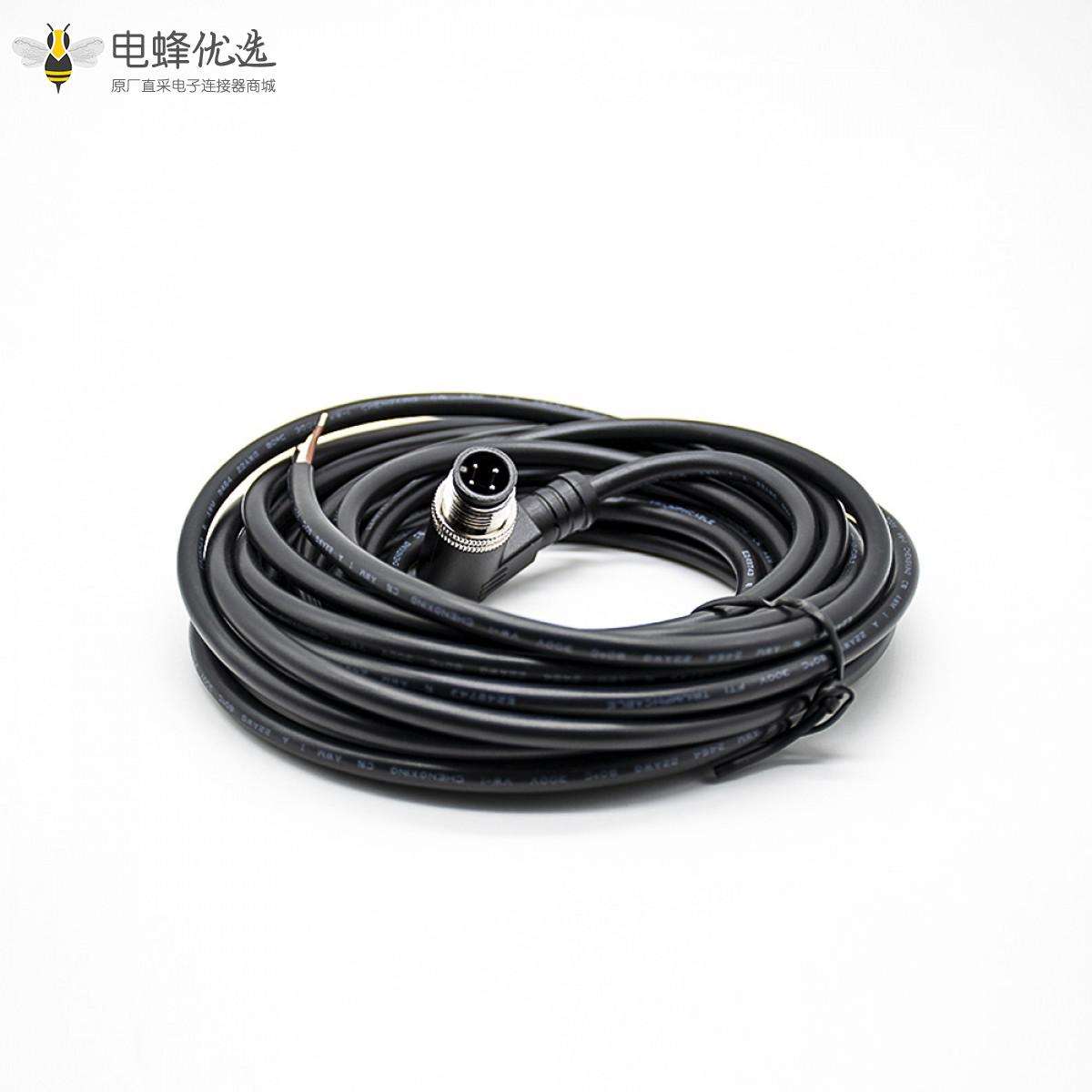 M12,A 编码,线束,4芯,公,弯式,焊线,单边线,不带屏蔽,5米;