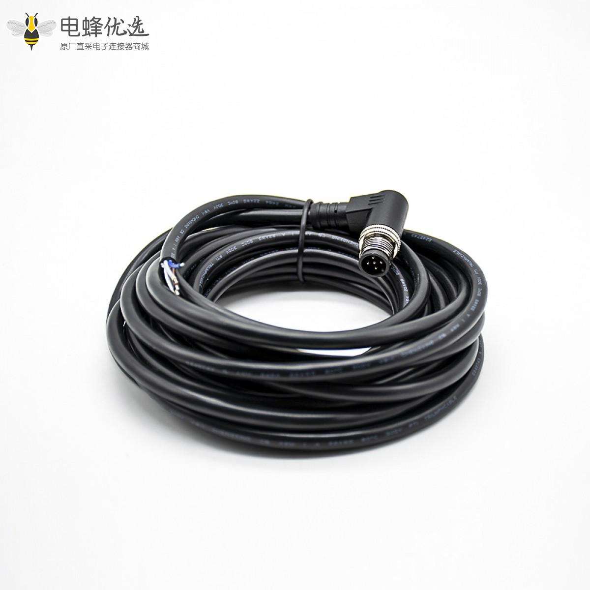 M12,A 编码,线束,5芯,公,弯式,焊线,单边,不带屏蔽,5米;