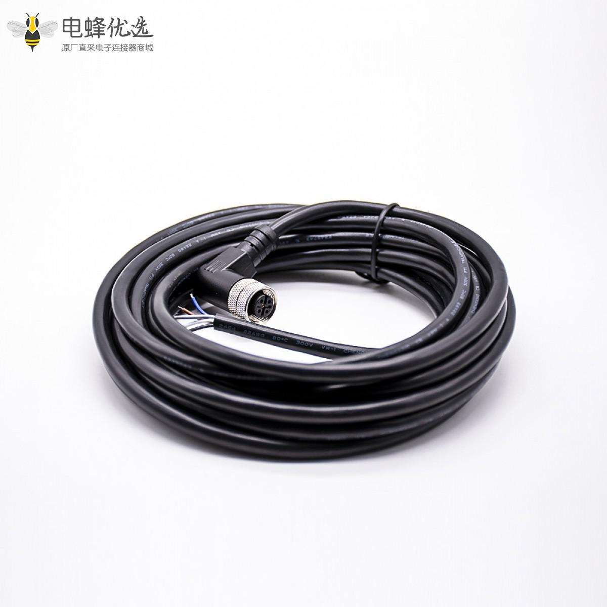 M12,A 编码,线束,5芯,母,弯式,焊线,单边,不带屏蔽,5米;