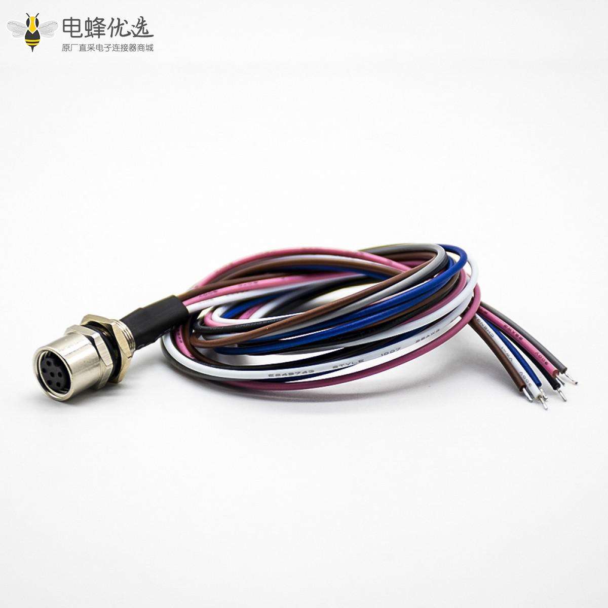 - M8,板端插座,6芯,直式,母头板端,焊线,后锁板,防水,带屏蔽,0.2M;