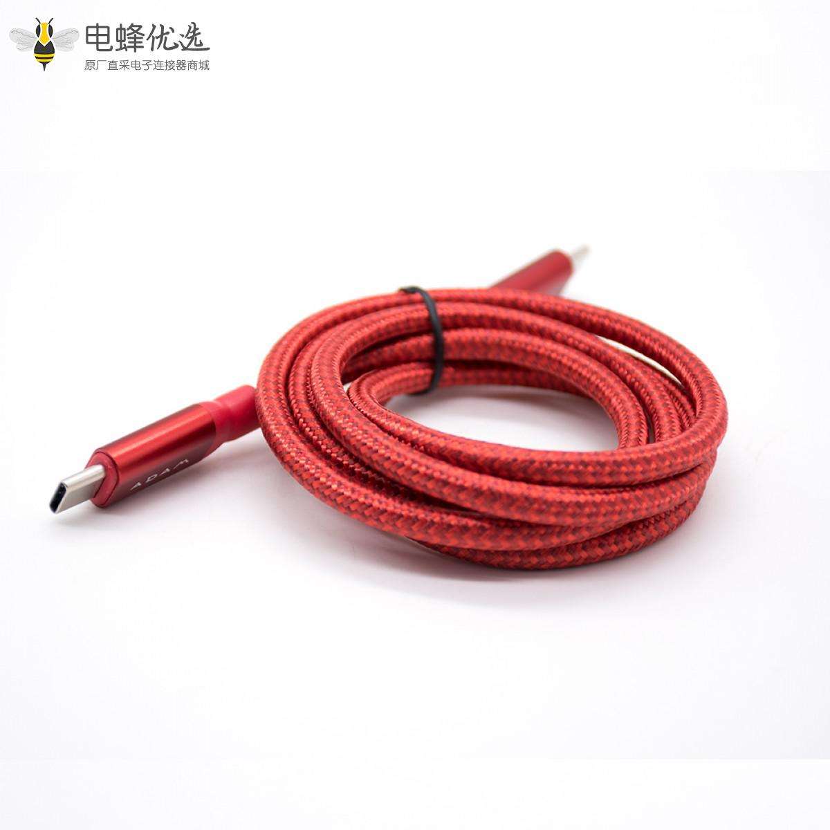 USB转接线,Type-C,公头,直式,Type-C,公头,直式,红色编织线,1米;