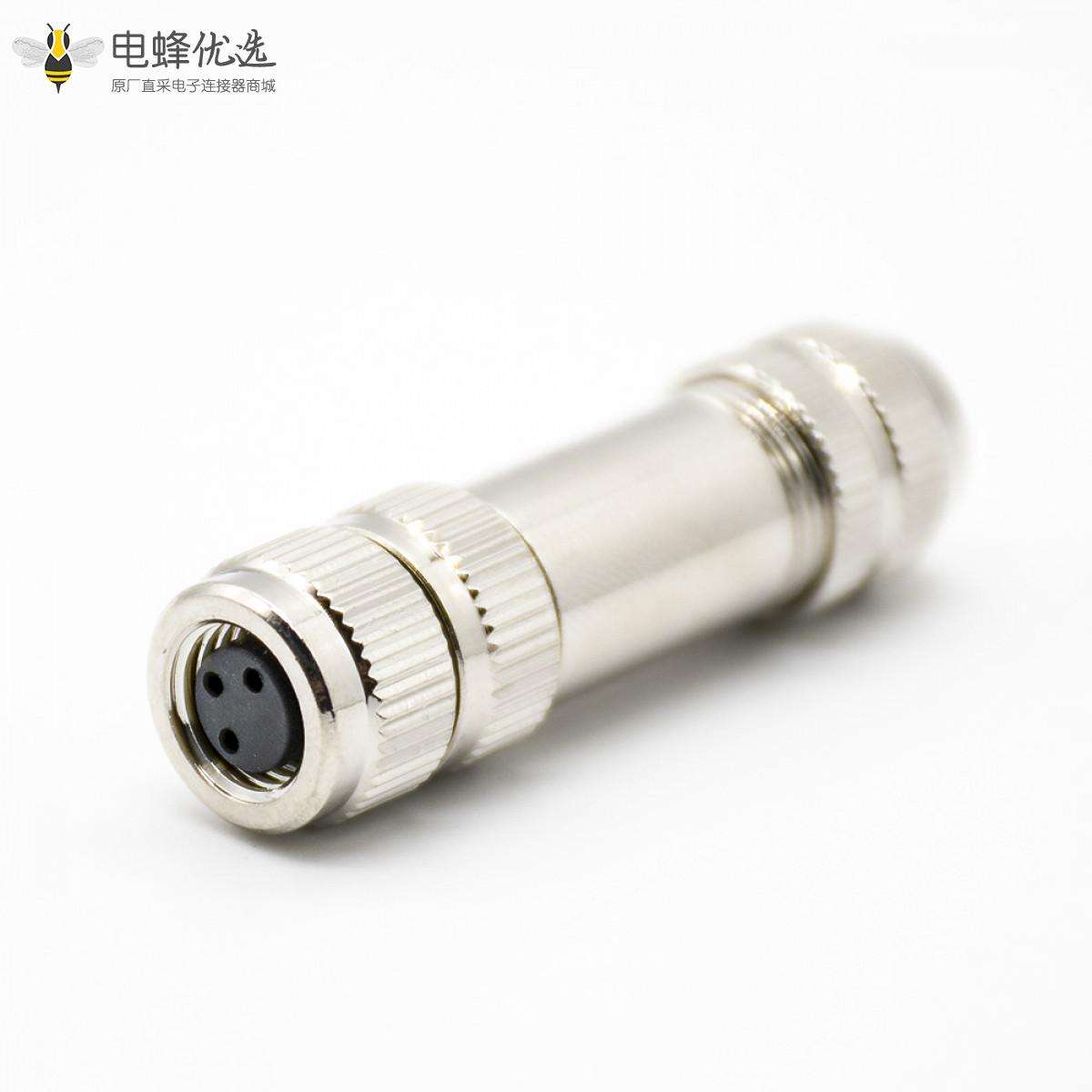 - M8组装接头,3芯,母头,直式,接线,螺丝锁线,全金属带屏蔽;
