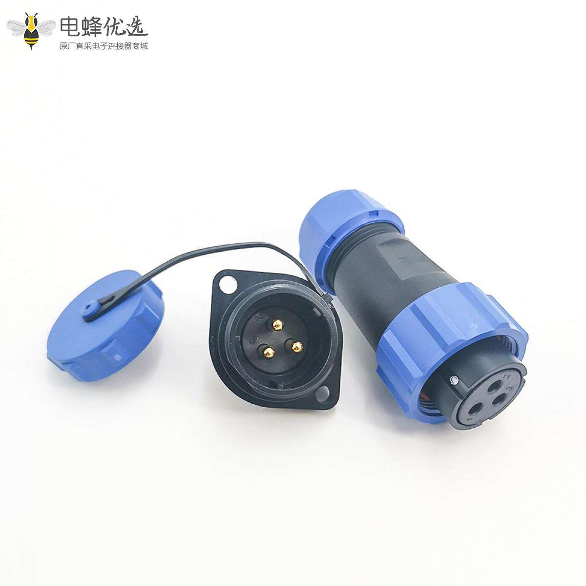 SP21系列,直式,2孔法兰,公菱形插座,母插头,面板安装,焊接中心针,3芯;