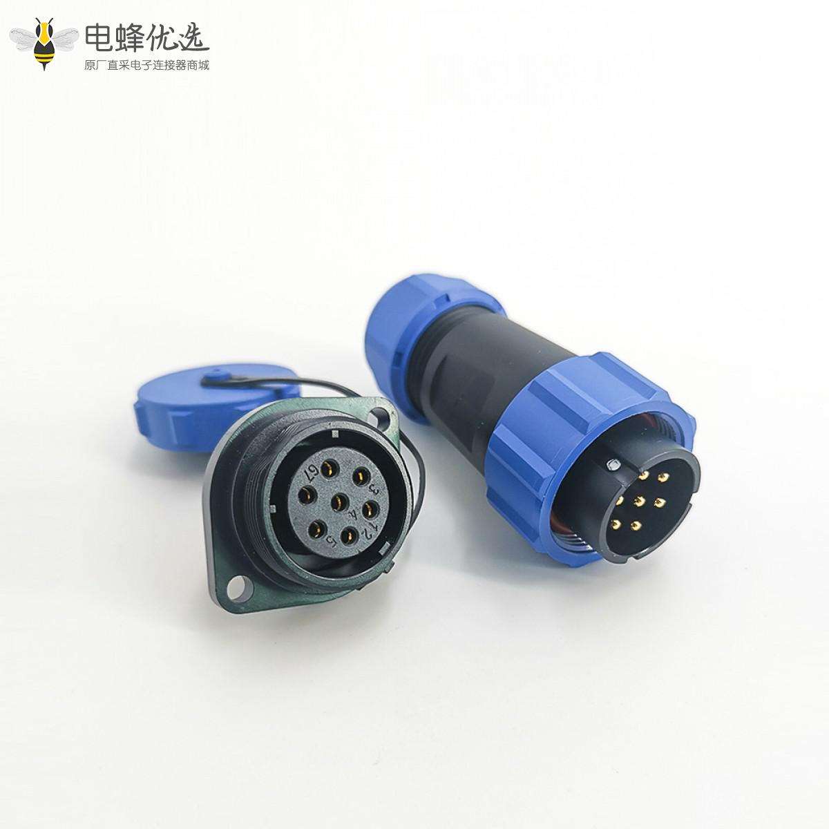 SP21系列,直式,公插头,2孔法兰,母插座,菱形插座,面板安装,焊接中心针,7芯;
