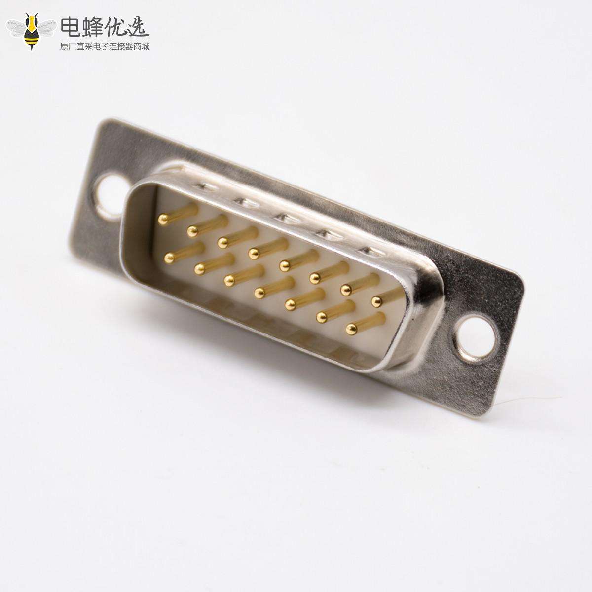 - D-sub连接器,车针型,公头,15芯,2排,镀镍,直式,焊杯;