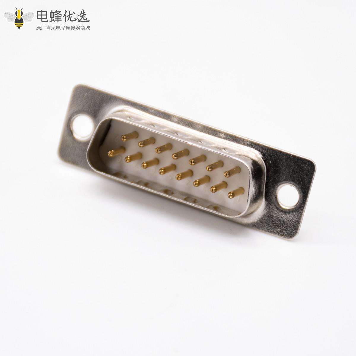 D-sub连接器,标准型,冲针,公头,15芯,2排,镀镍,直式,焊杯;