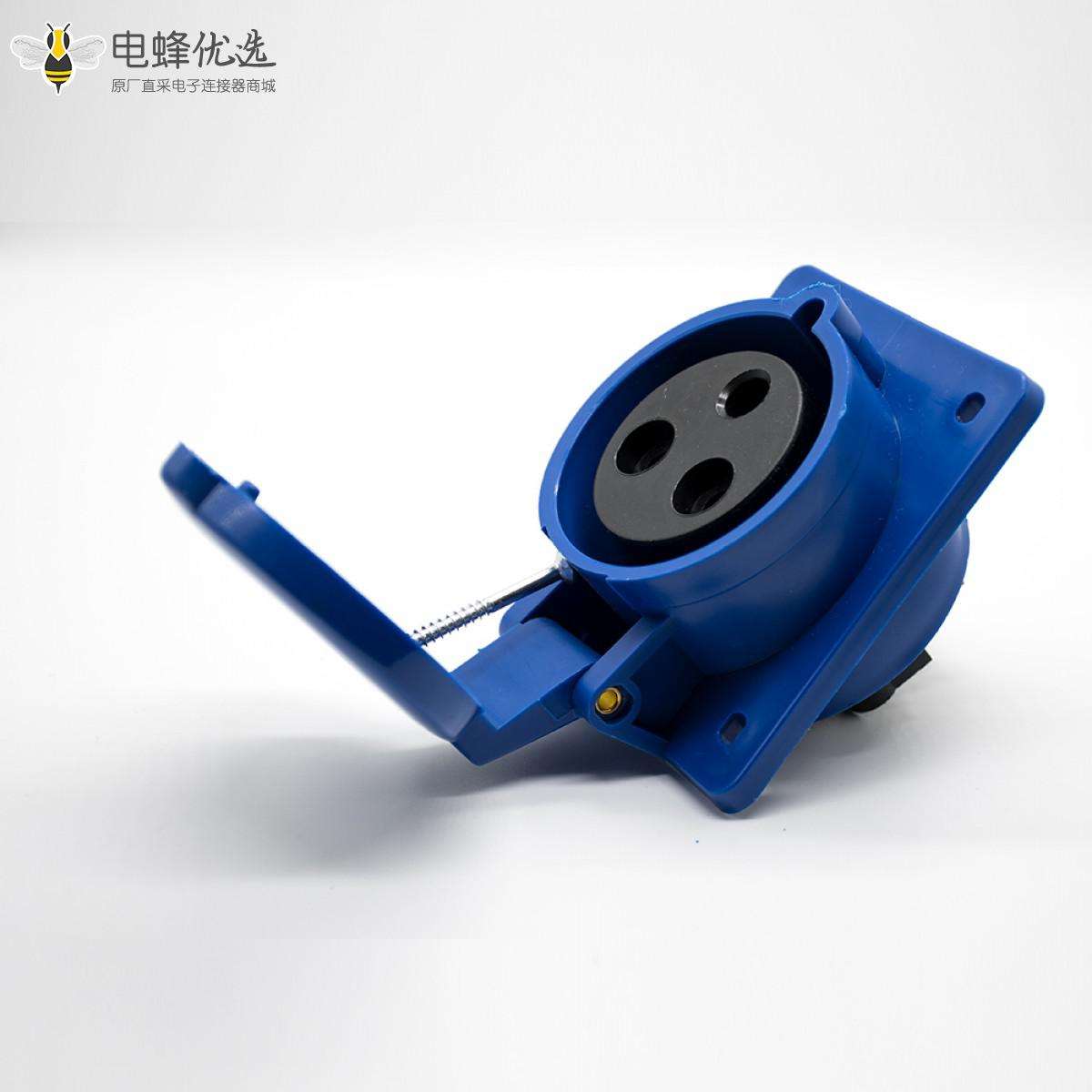 暗装斜座, 3芯, 母头, 32A, 220V-240V, IP44, 2P+E, 蓝色;