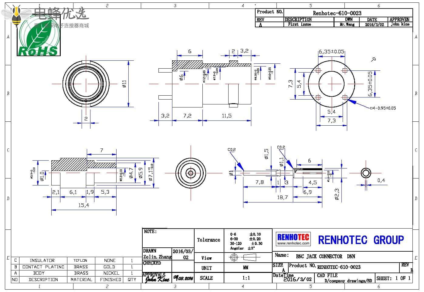 - PCB板端,母头,直式,锌合金,RF射频同轴,BNC连接器,50欧姆,4脚;