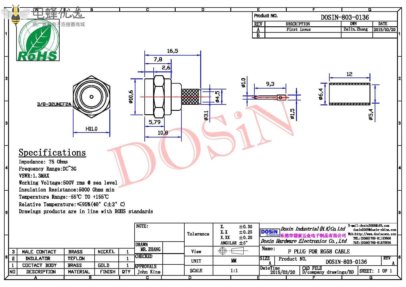 F连接器,同轴线缆,公头,75欧,直式,压接,压接;