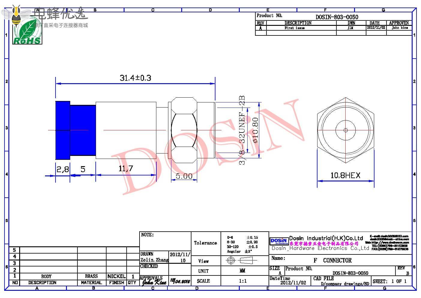 - 中心接触电阻: ≦ 10 mΩ (Milliohms max.)