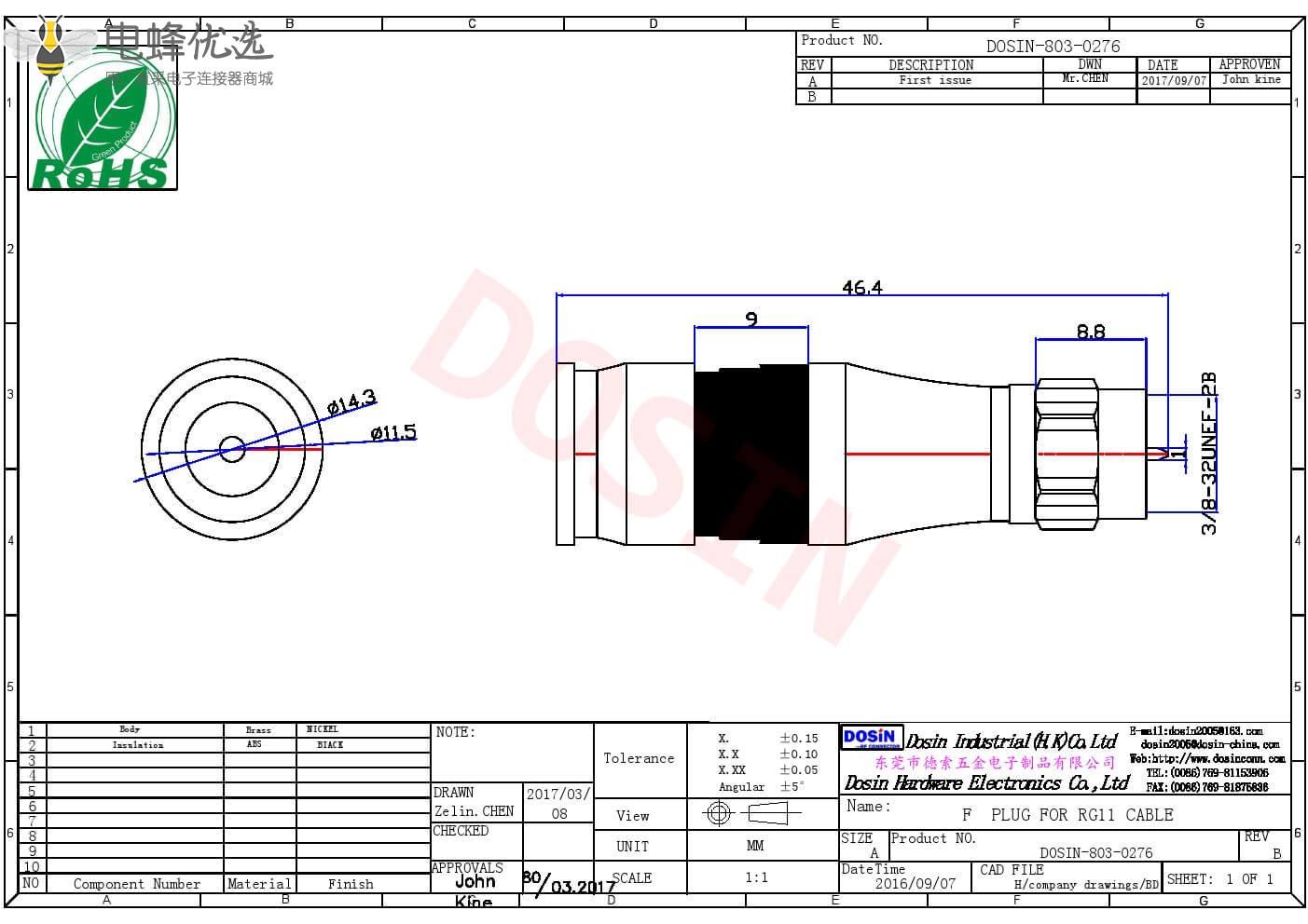 - 中心接触电阻: ≦ 10 mΩ (Milliohms max.)
