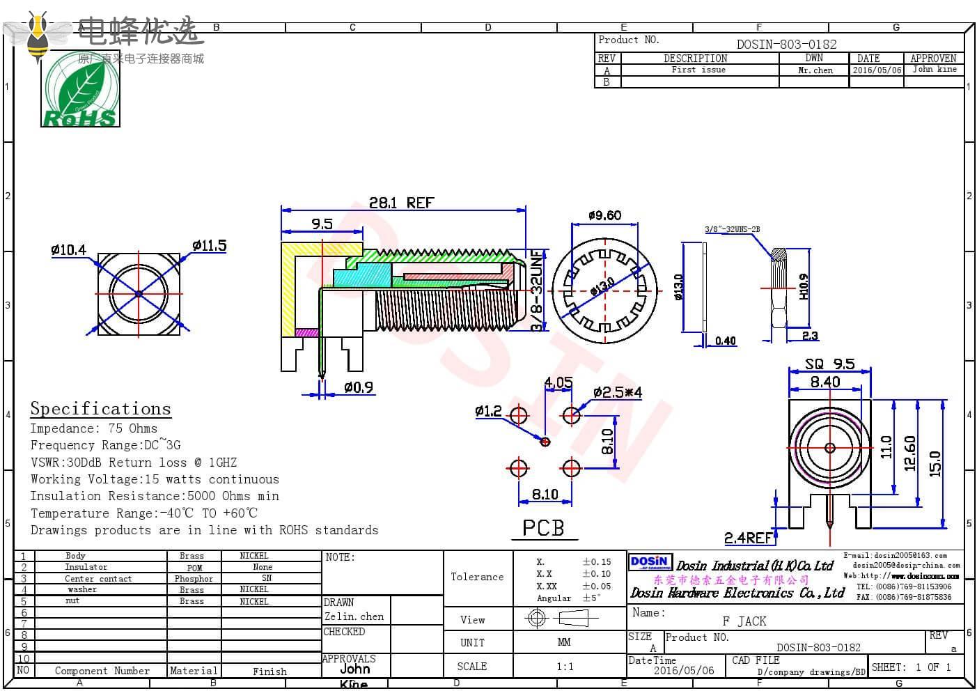 - 阻抗:75 ohm